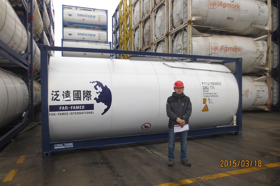 在我司擁有T14、T20、T11諸多罐型的SOC TANK后,我們于2014年底又向南通中集訂購了一批25000L的20''ISO TANK。2015-03-18,我司受CIMC的邀請到其工廠(chǎng)參觀(guān)并接收下線(xiàn)新罐。